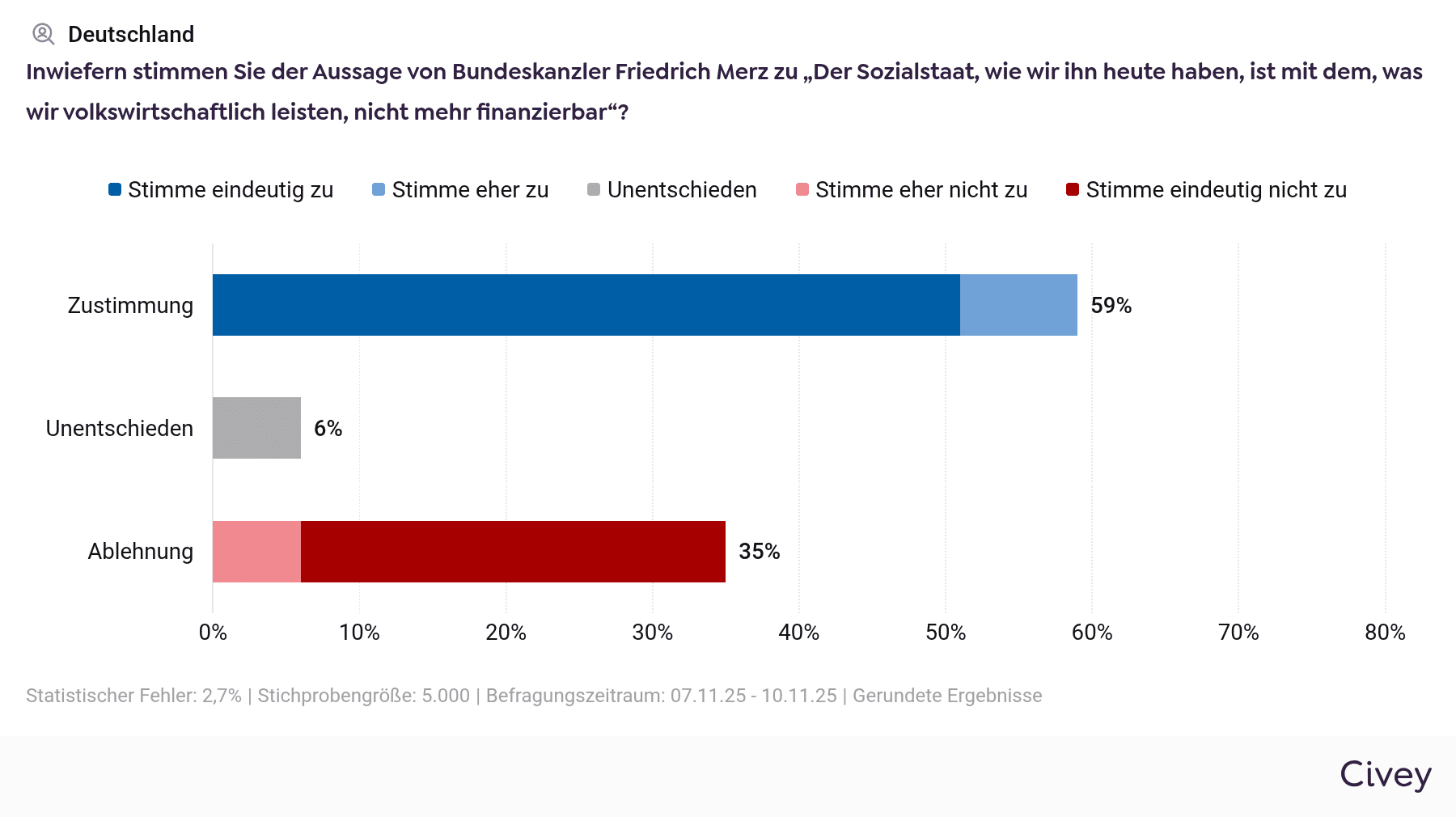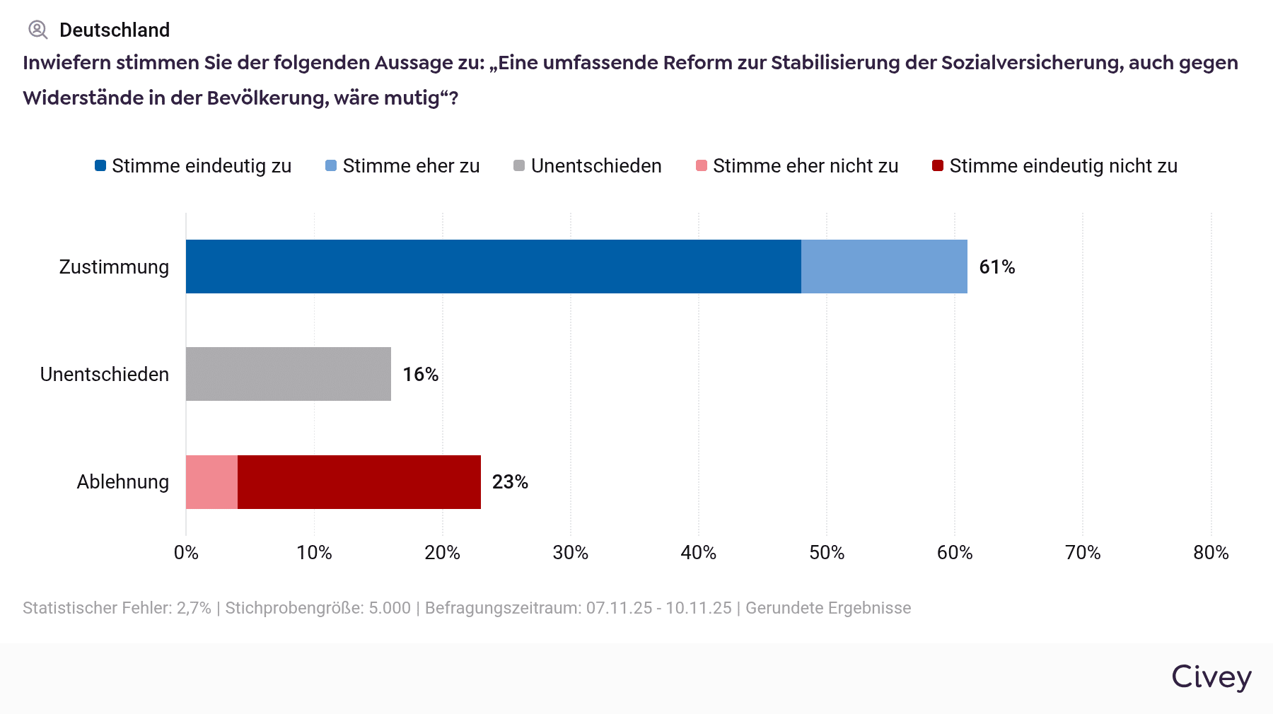 Den meisten ist klar: So wie es ist, kann es nicht bleiben. Eine deutliche Mehrheit stimmt der Einschätzung zu, der Sozialstaat sei in seiner jetzigen Form „nicht mehr finanzierbar“.